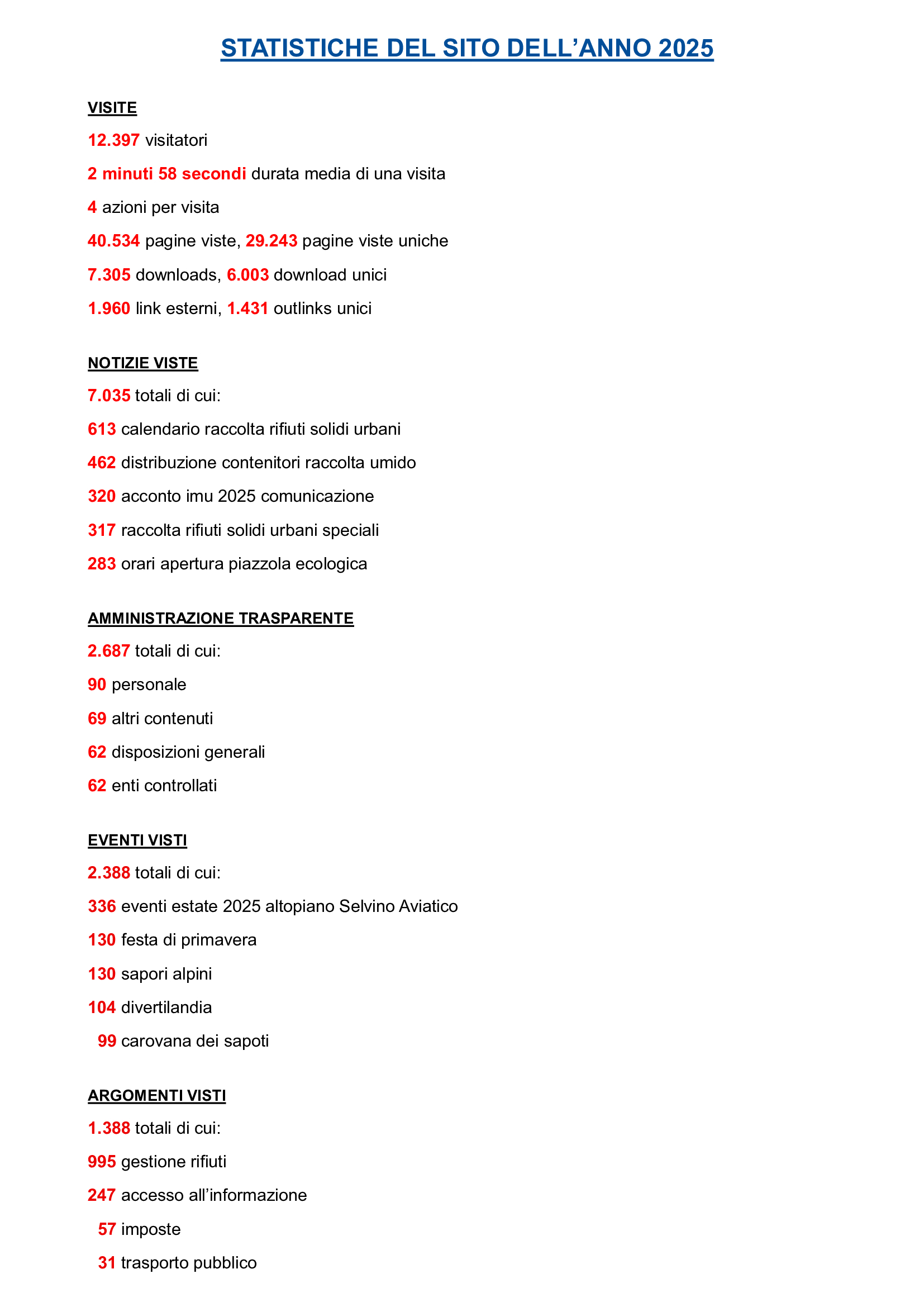 Statistiche del sito istituzionale dell'anno 2025