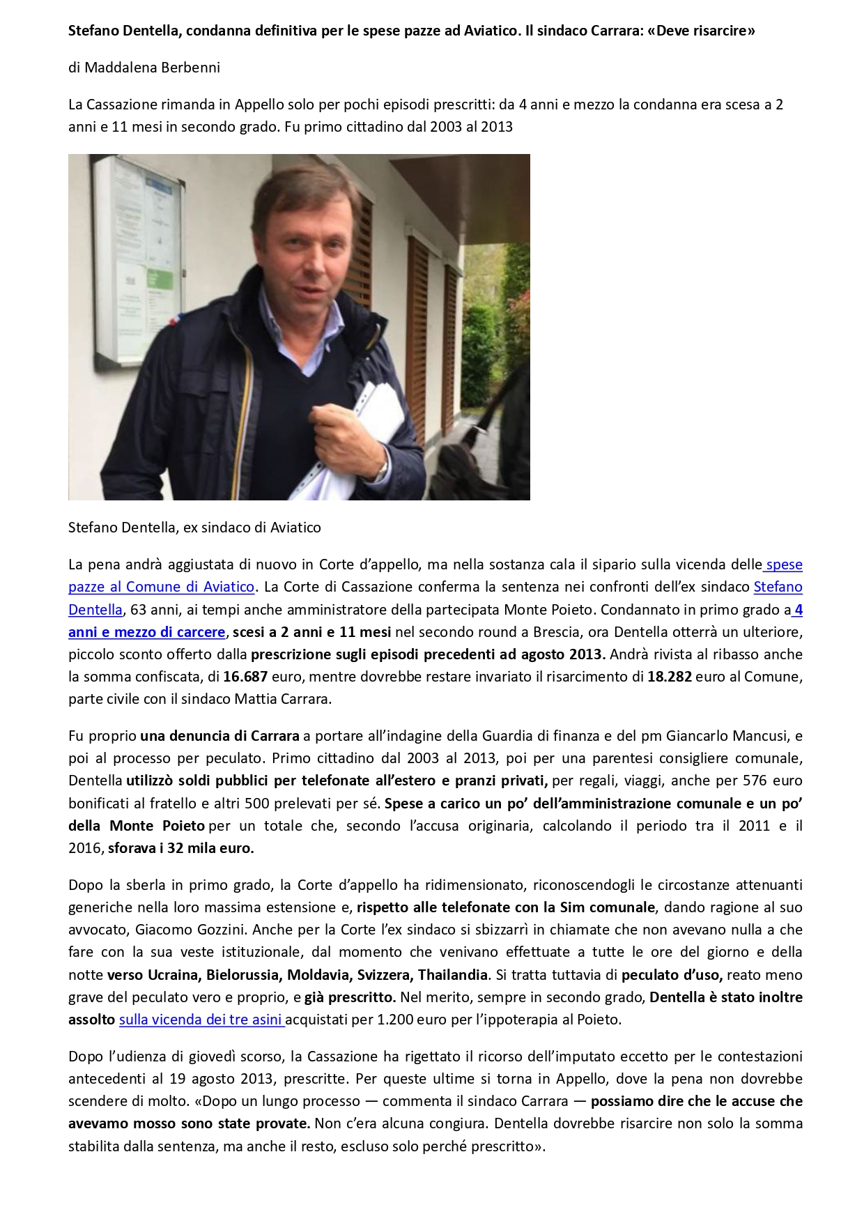 Stefano Dentella, condanna definitiva per le spese pazze ad Aviatico - Il sindaco Carrara: «Deve risarcire»